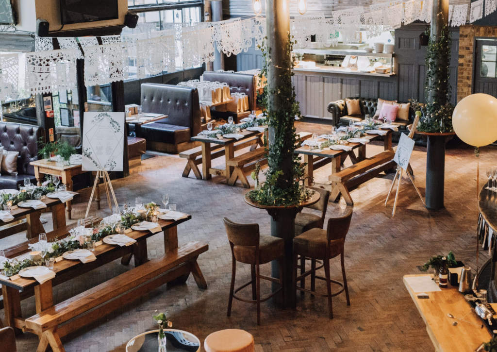 Moments from Caledonian Road and Kings Cross. This gorgeous venue will provide a unique setting for your celebration, featuring tall ceilings, large windows, exposed brick walls, and rich earthy tones.